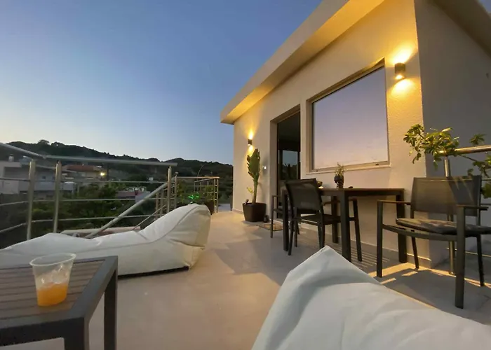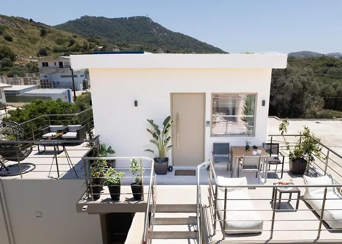 "Aetheria" Rooftop Resort Rhodes With Sea View Kremastí ligger inom 7 km från Church of Our Lady of Filerimos, som anses vara en helig plats för tillbedjan, och erbjuder förvaringsrum för gästernas bekvämlighet. För att diversifiera din semesterupplevelse erbjuds gästerna snorkling, vandring och hästridning.